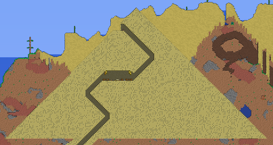 Prior to 1 3 pyramids were quite common and contained two rooms one along the standard path and the other completely enclosed the one along the path always had a gold chest while the second one only sometimes had one.