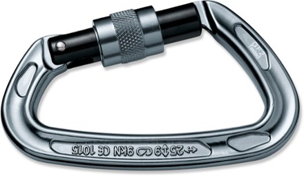 Black diamond oval screwgate carabiner.